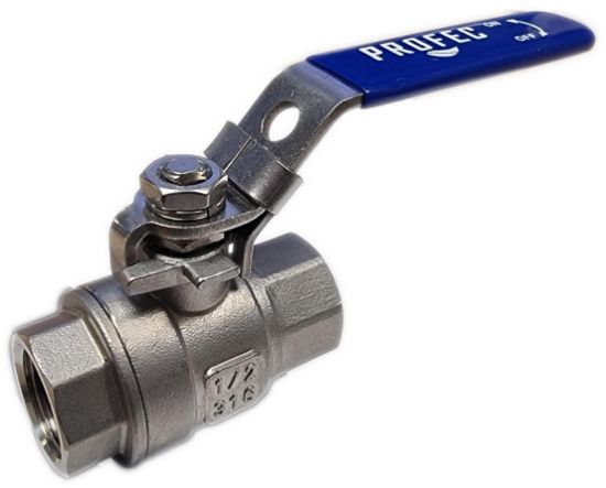 Kogelkraan 1/2" 2-dlg RVS, blauwe hendel